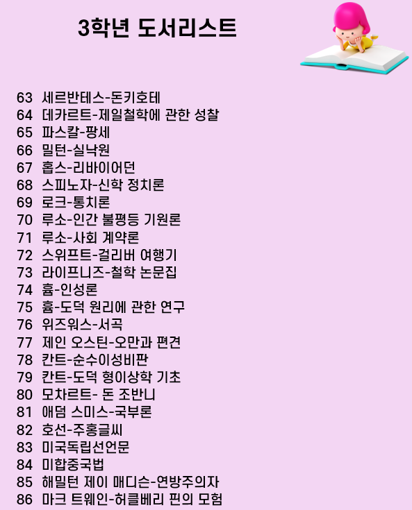 저는 주로 이지성 작가의 책 <리딩으로 리드하라> 에서 소개된 인문고전 추천도서 위주로 읽고 있었는데요. 이번에 임성훈 작가님의 <칼비테의 인문고전 독서교육>을 읽다 보니 서울대학교, 연세대학교, 세인트존스대학교에서 내놓은 인문고전 필독서 리스트가 있다는 것을 알게 되었습니다.