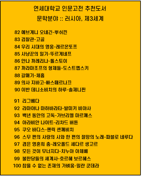 서울대학교 인문고전 추천도서 동서양 문학편 100권