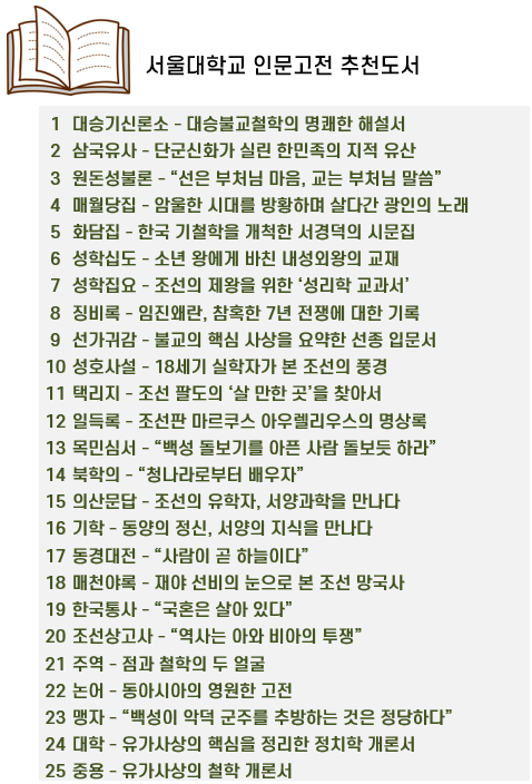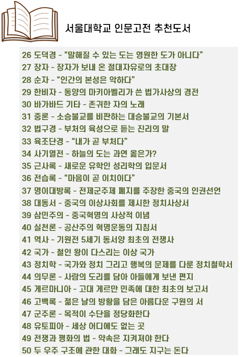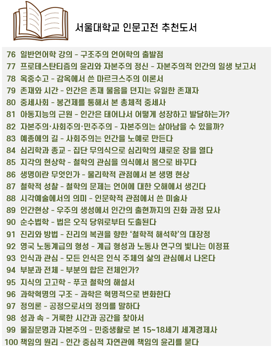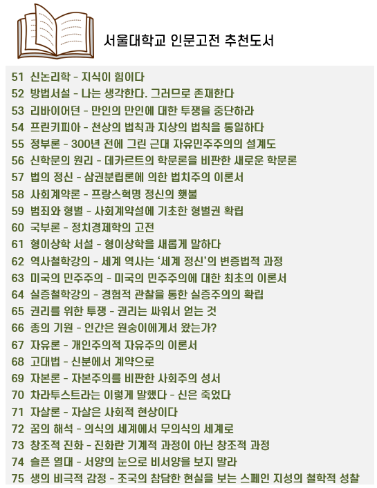 서울대학교 인문고전 추천도서 동서양 사상편 100권