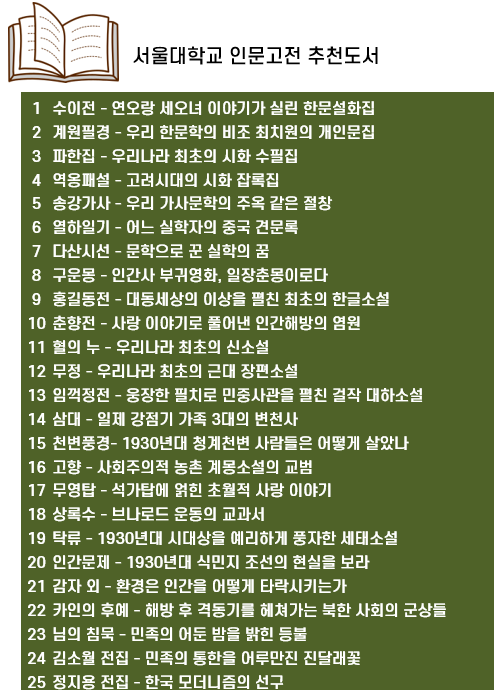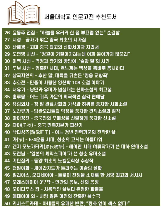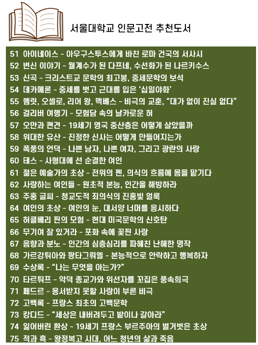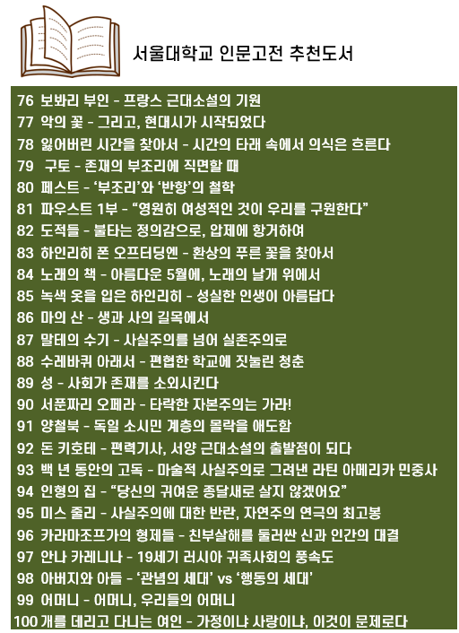 서울대학교 인문고전 추천도서 동서양 문학편 100권