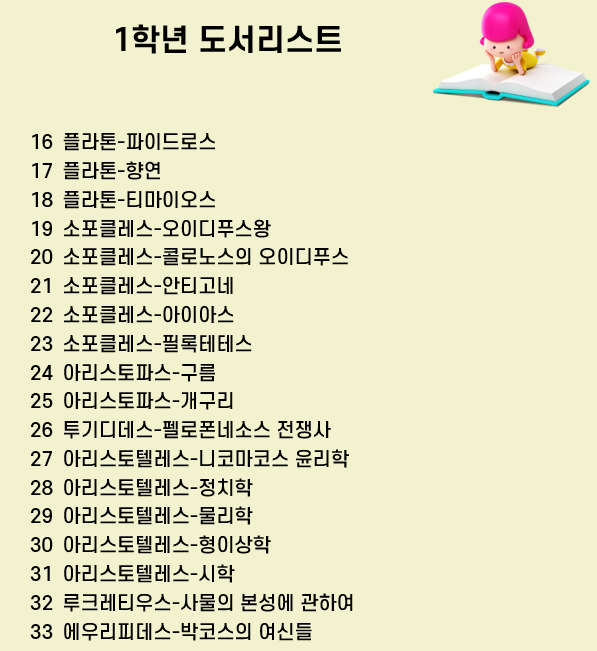 저는 주로 이지성 작가의 책 <리딩으로 리드하라> 에서 소개된 인문고전 추천도서 위주로 읽고 있었는데요. 이번에 임성훈 작가님의 <칼비테의 인문고전 독서교육>을 읽다 보니 서울대학교, 연세대학교, 세인트존스대학교에서 내놓은 인문고전 필독서 리스트가 있다는 것을 알게 되었습니다.