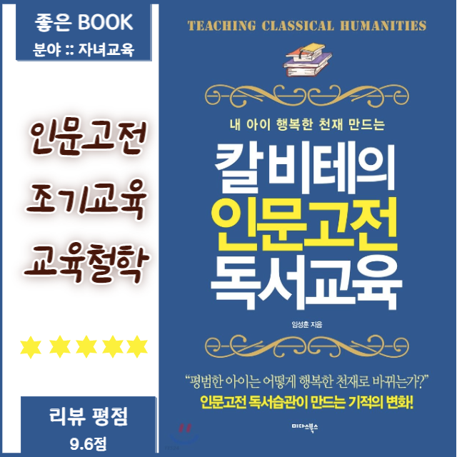 저 또한 우리 아이가 태어나기 전에 완역본을 사서 읽고 칼비테 교육법을 실천해야지 생각했었습니다. 벌써 10년 가까이 되어가는데 이번에는 자신의 두 아이를 불행한 영재가 아닌 행복한 천재로 키우면서 칼비테의 교육법을 연구하고 실천하고 있는 임성훈 작가님의 <칼비테의 인문고전 독서교육> 책을 읽게 되었습니다.